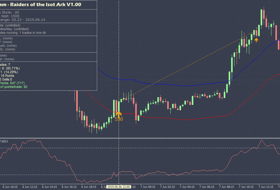 - A signal indicator which shows when the price comes from outside the channel inside that the trend is strong enough...