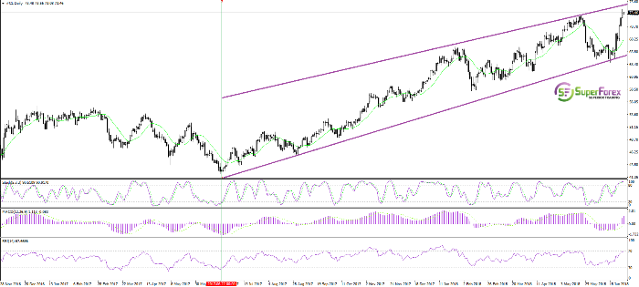 Tarif terus dalam TF tren naik, meskipun beberapa minggu yang lalu itu di bawah ancaman penyelesaian, setelah keputusan OPEC untuk meningkatkan ekstraksi minyak. Namun, ini tidak terjadi. Secara umum, peningkatan minyak tidak signifikan seperti yang diharapkan di pasar. Selain itu, ada sejumlah faktor di pasar yang terus mendukung minyak. Tampaknya AS dan OPEC telah memutuskan untuk memperdagangkan tempat-tempat: sebelumnya, OPEC telah melakukan upaya untuk menaikkan harga minyak, sementara AS telah mencegah semua upaya ini berkat pertumbuhan yang stabil dari produksi minyak shale.