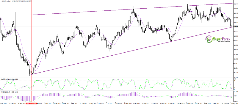 Minggu ini harga Emas jatuh ke nilai terendah untuk 2018 hingga 1285 dolar dan terus menguji garis support. Dolar AS terus menguat terhadap mata uang utama berkat peningkatan probabilitas peningkatan aktif suku bunga FED dan pertumbuhan hasil obligasi pemerintah 10-tahun. Dalam waktu dekat, dolar dapat menerima dukungan baru dengan rilis data terbaru di pasar real estat dan pidato mendatang oleh ketua Federal Reserve. Jika berita itu sesuai dengan ekspektasi investor, USD akan menaikkan harga.